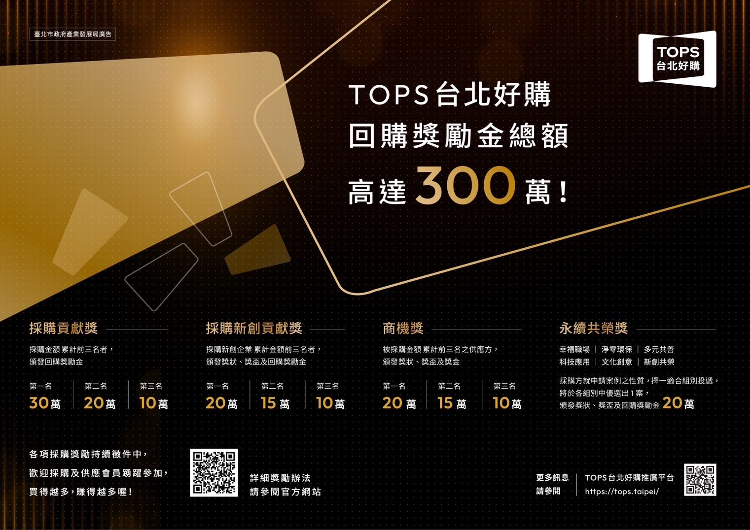 | 事務組-公佈欄 | [教育部函]臺北市政府產業發展局函請踴躍參與「臺北市中小企業採購計畫─台北好購推廣平台」(https://tops.taipei/)推出之「台北好購獎勵機制」一案,轉請查照。 |